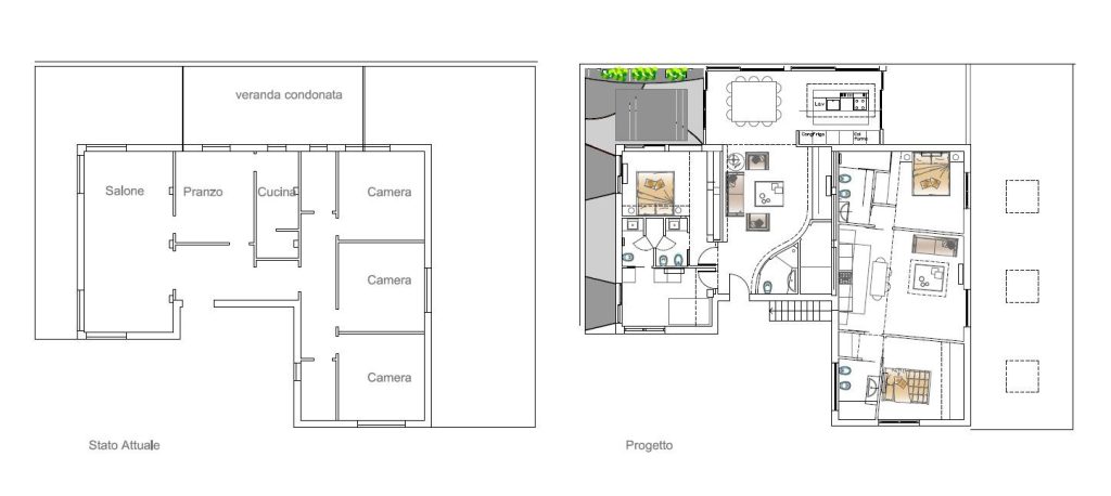 Partendo dalla necessità di garantire una nuova autonomia a due generazioni diverse, abbiamo trasformato un unico, grande appartamento al piano terra di una villa in due unità distinte. Il progetto si è mosso su un doppio binario: da un lato la rigorosa divisione degli spazi, volta a preservare la privacy e l’indipendenza dei figli; dall’altro la ricerca estetica assoluta, nutrita da un dialogo costante tra progettista e committenza.